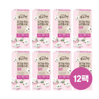 [깨끗한나라] ★행사 진행중★ 건강한 순수한면 유기농 순면 탐폰 레귤러 8개입 x 12팩