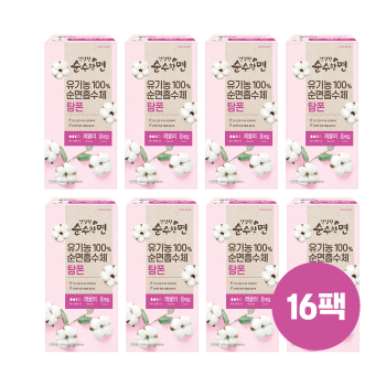 [깨끗한나라] ★행사 진행중★ 건강한 순수한면 유기농 순면 탐폰 슈퍼 8개입 x 16팩