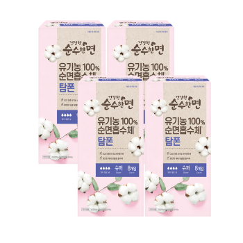 [깨끗한나라] ★행사 진행중★ 건강한 순수한면 유기농 순면 탐폰 슈퍼 8개입 x 4팩