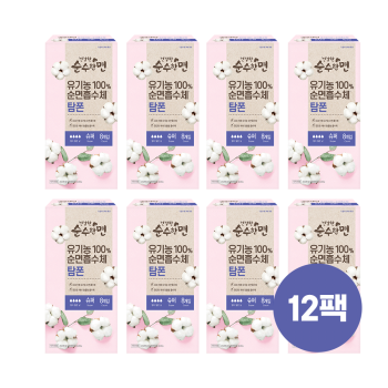 [깨끗한나라] ★행사 진행중★ 건강한 순수한면 유기농 순면 탐폰 슈퍼 8개입 x 12팩