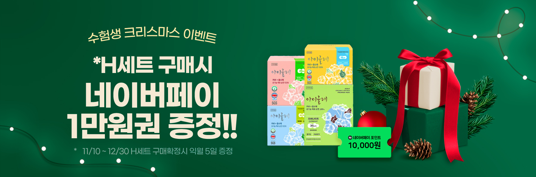 흡수체까지 100% 유기농 인증 목화 순면 생리대 H1 set (파우치+원피스 증정)