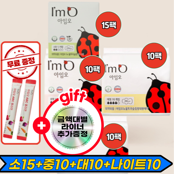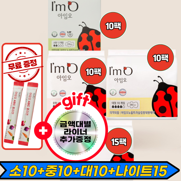 [사은품증정][10팩구성][유기농 생리대 아임오] 초특가+증정품(소,중,대,라이너,롱라이너,나이트)