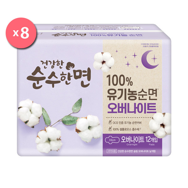 [깨끗한나라] 건강한 순수한면 유기농 순면 오버나이트 12매 x 8팩