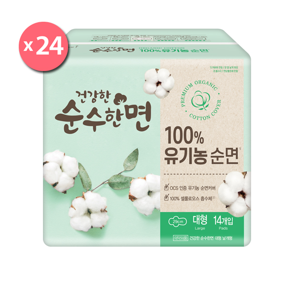 [깨끗한나라] 건강한 순수한면 유기농 순면 대형 14매 x 24팩