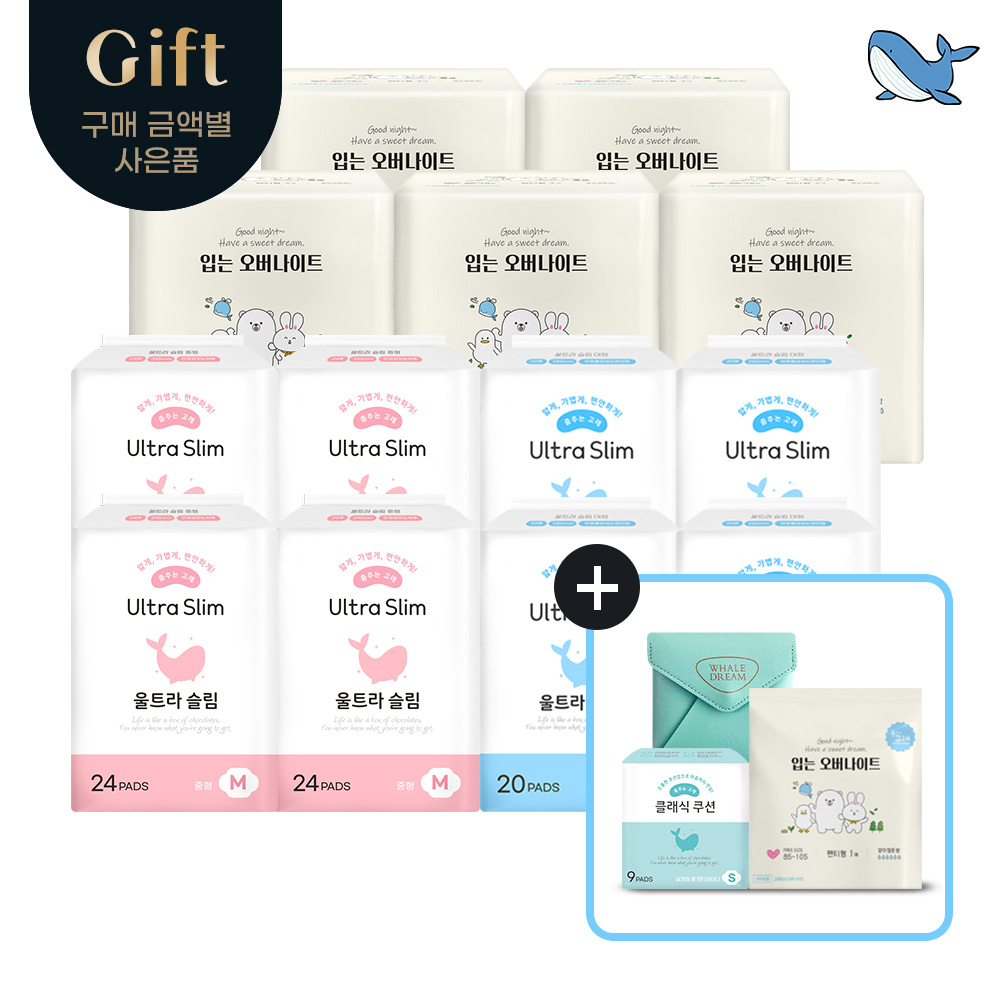유기농본 순면커버 대형6팩 + 중형8팩 + 소형4팩 + 오버나이트6팩 + 팬티라이너8팩 + 입는오버나이트 중형4팩