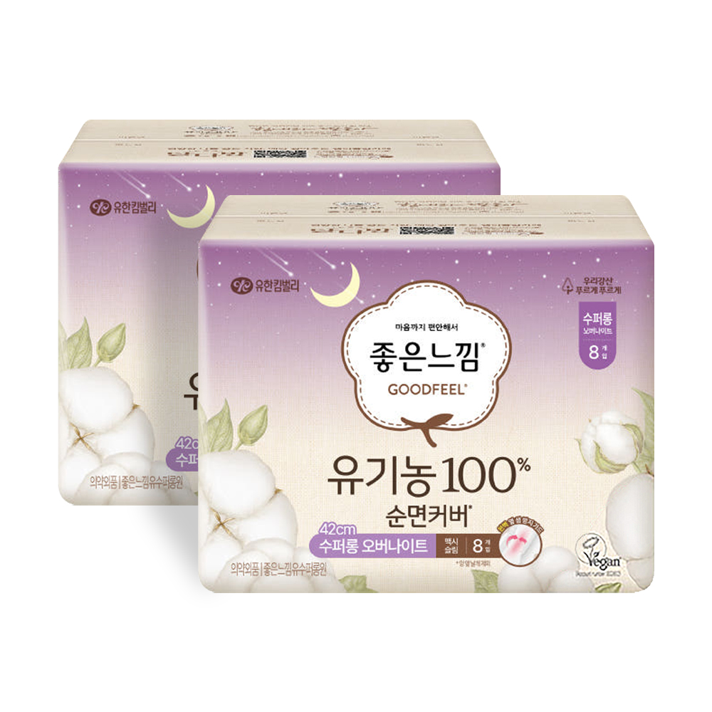 좋은느낌 유기농순면 생리대 수퍼롱 오버나이트 8매x2팩