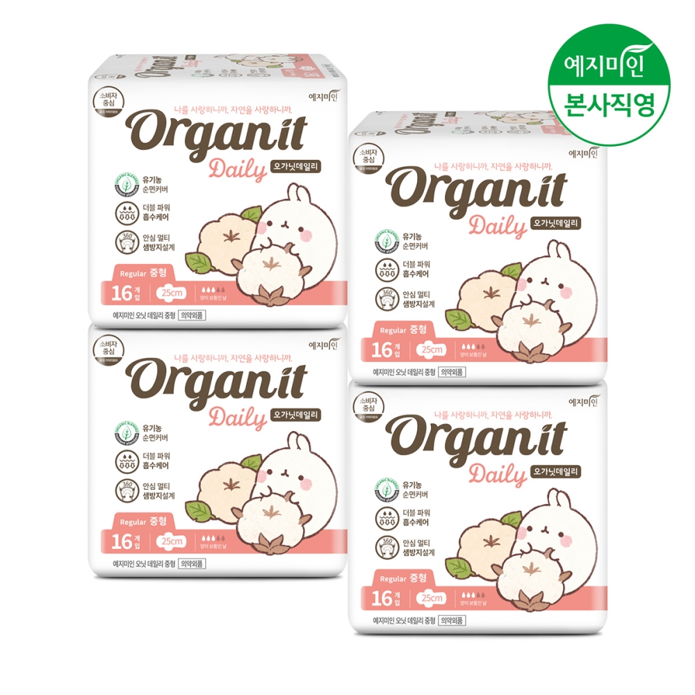 예지미인 유기농 오가닛데일리 생리대 중형16Px4팩