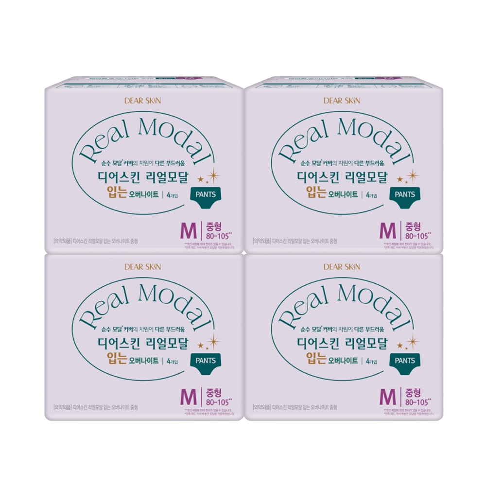 [깨끗한나라] 디어스킨 리얼모달 입는오버나이트 중형 4p x 4팩