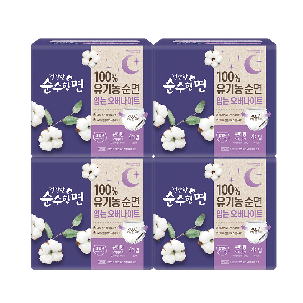 [깨끗한나라] 건강한 순수한면 유기농 순면 입는오버나이트 중형4px4팩