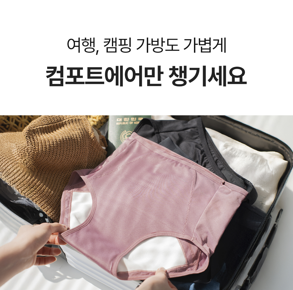 • 단색 컴포트에어 오버나이트 생리팬티 3장 SET+ (증정) 효소세제 300ml + 방수 파우치