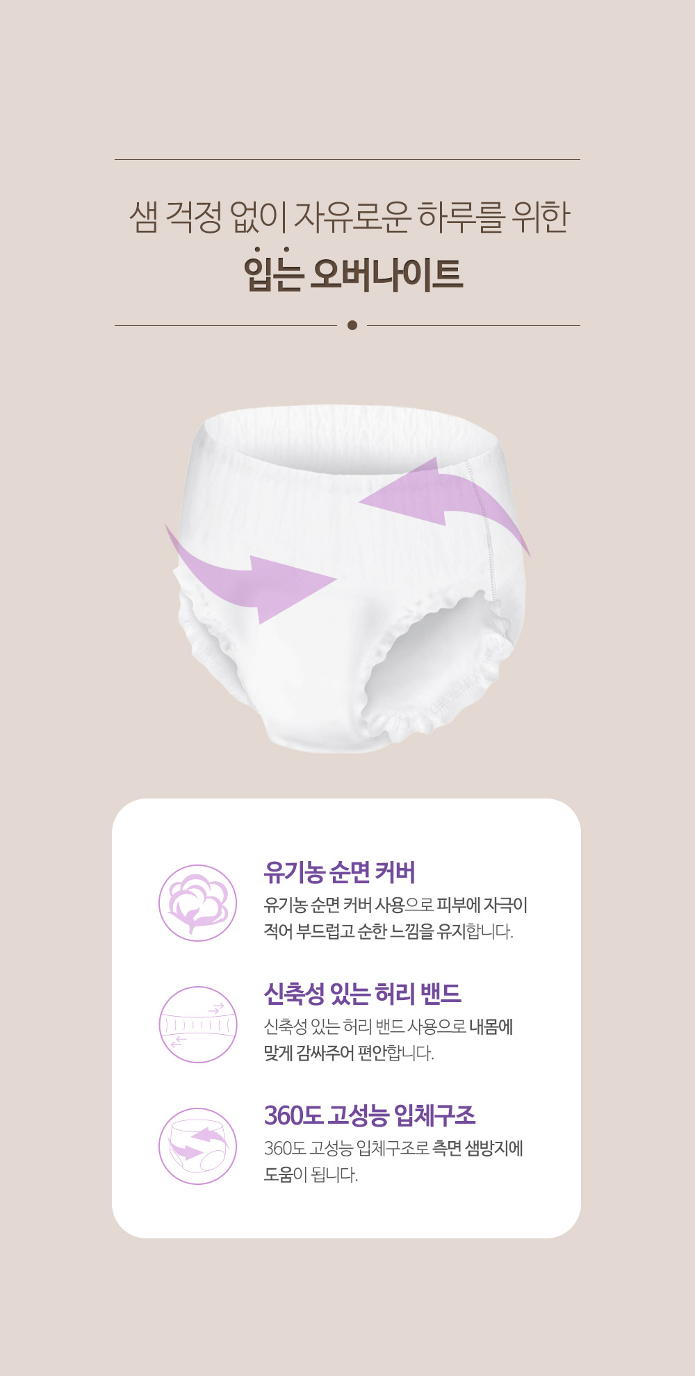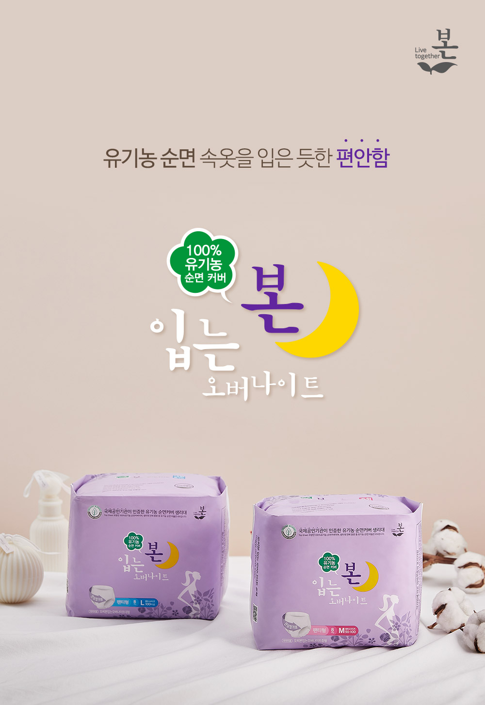 유기농본 순면커버 입는오버나이트 중형 8매 * 4팩