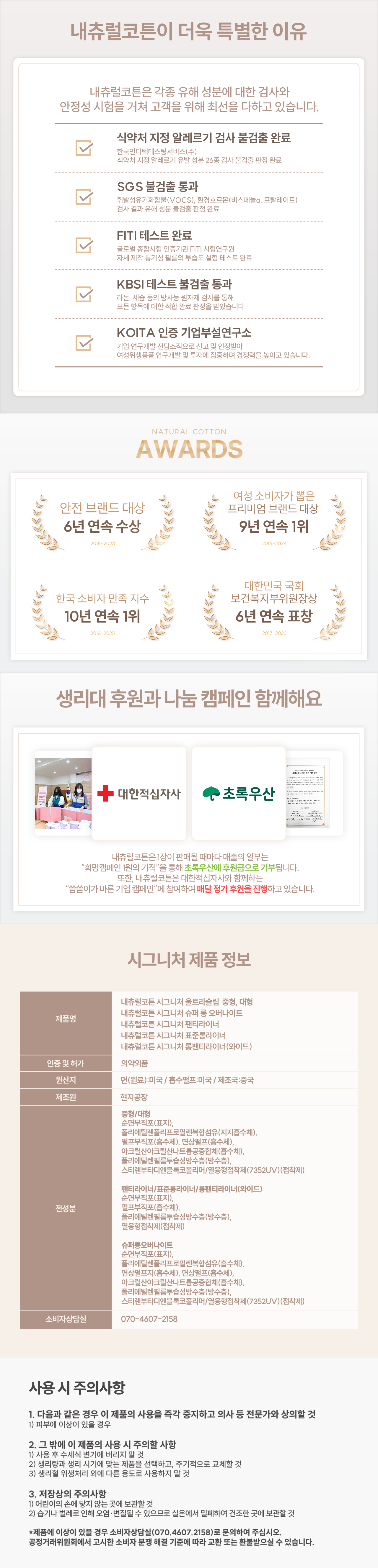 내츄럴코튼 시그니처 순면커버 팬티라이너 34매