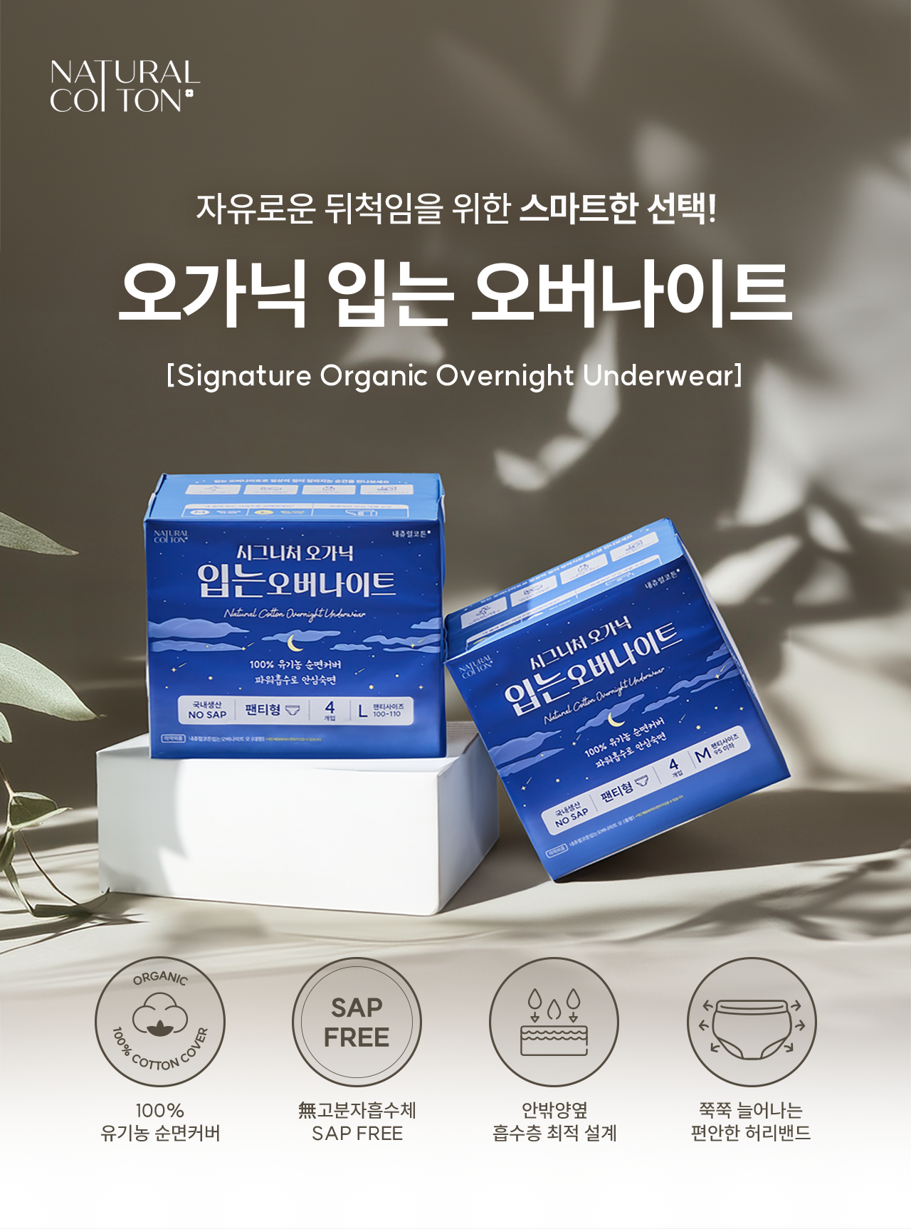 내츄럴코튼 시그니처 오가닉 유기농 순면커버 입는 오버나이트 대형 4매