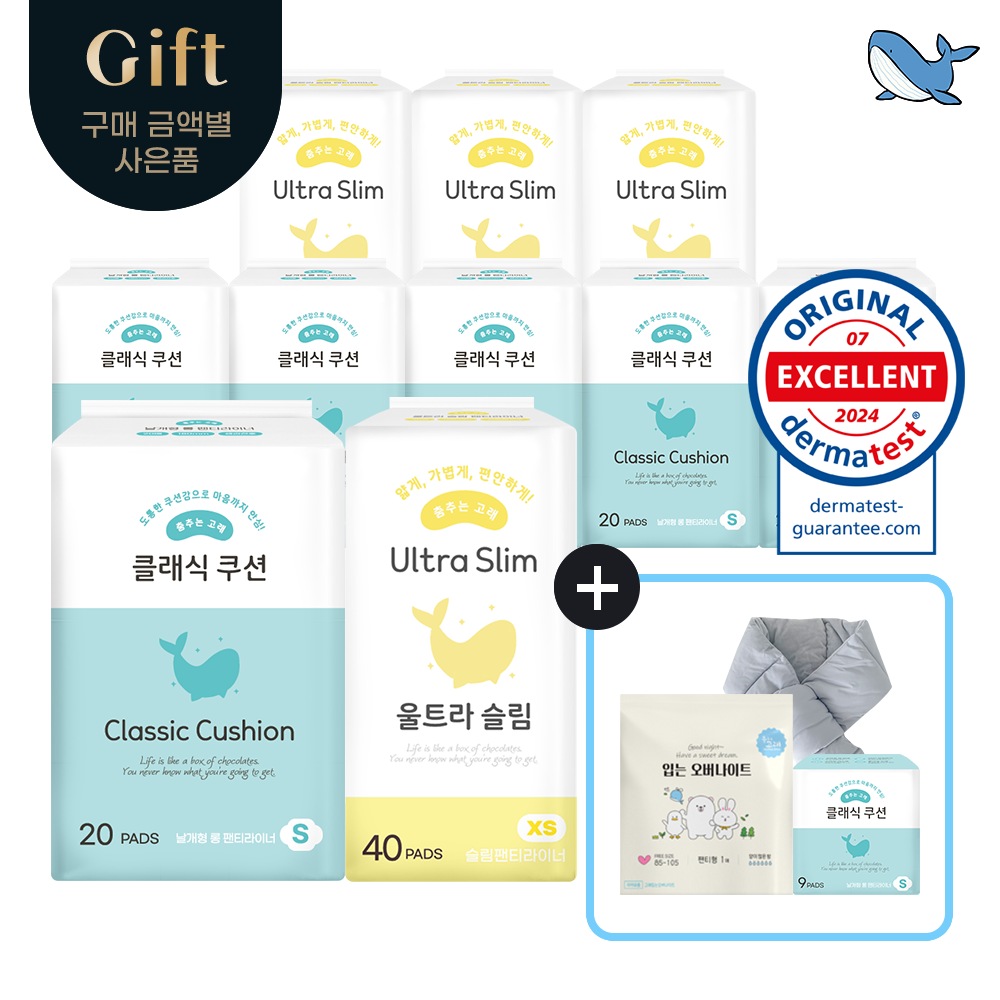 춤추는고래 대용량 날개형 롱팬티라이너 6팩+슬림형 4팩 /280P