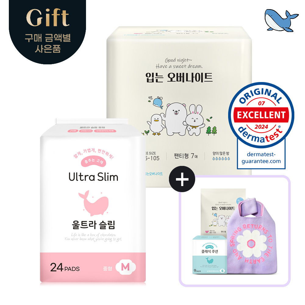 춤추는고래 대용량 생리대 중형 1팩 + 입는오버나이트 1팩 /31P