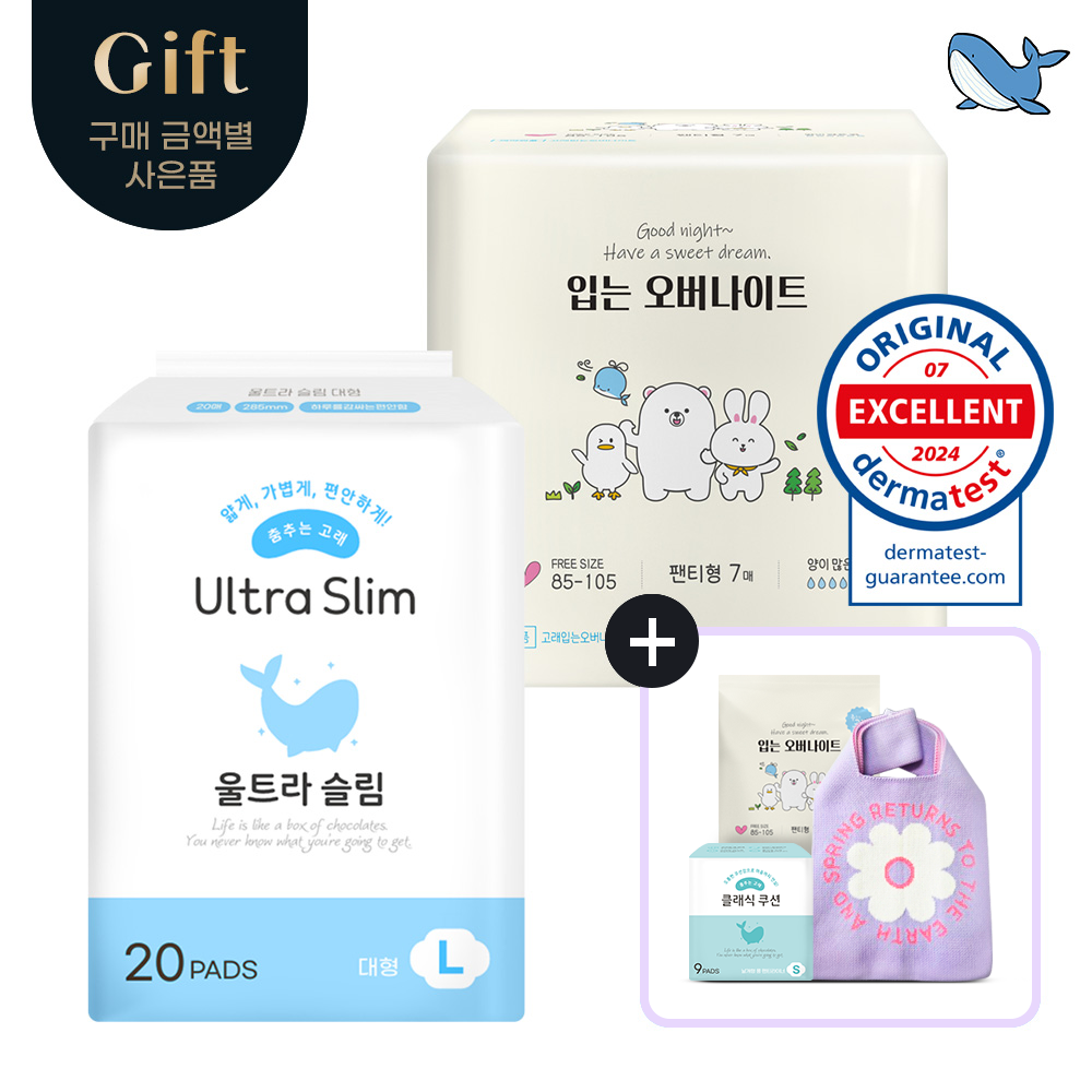 춤추는고래 대용량 생리대 대형 1팩 + 입는 오버나이트1팩 /27P