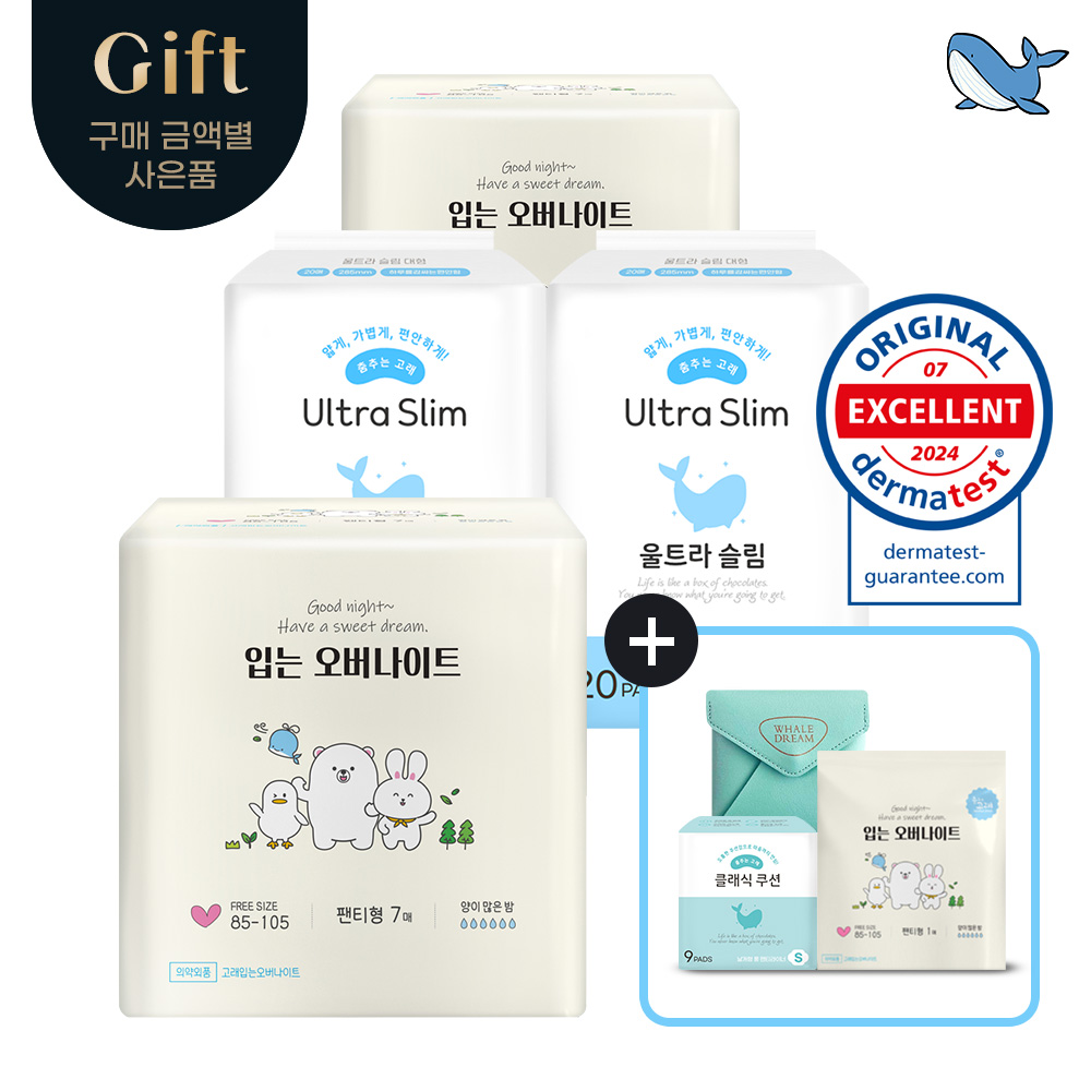 춤추는고래 대용량 대형 20매 X 2팩 + 입는 오버나이트 7매 x 2팩 /54P