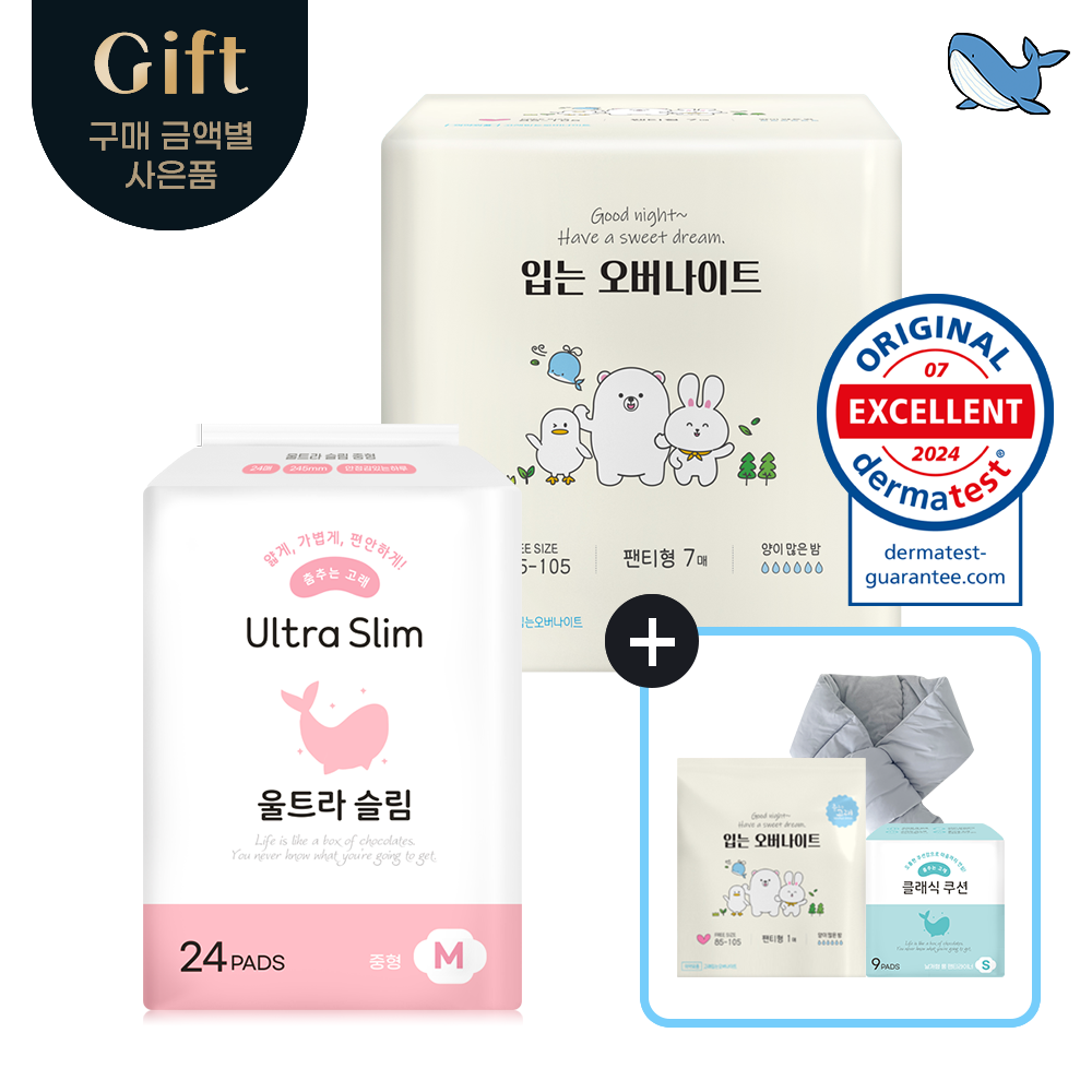 춤추는고래 대용량 생리대 중형 1팩 + 입는오버나이트 1팩 /31P
