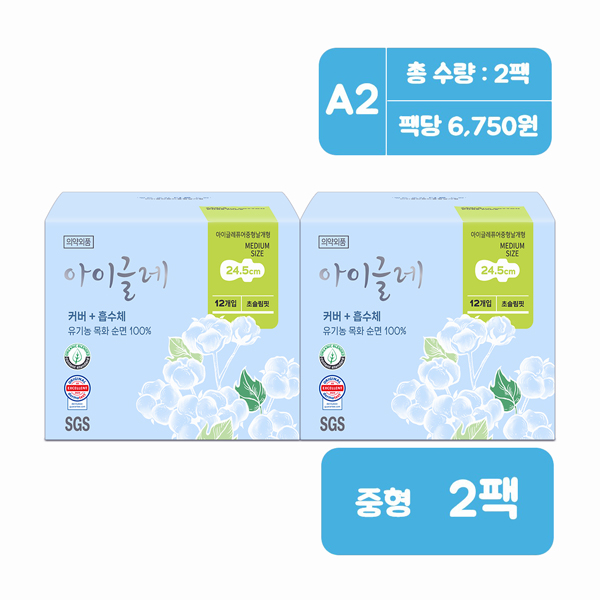 흡수체까지 100% 유기농 인증 목화 순면 생리대 A2 set
