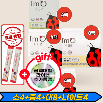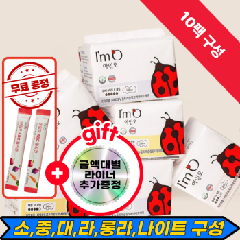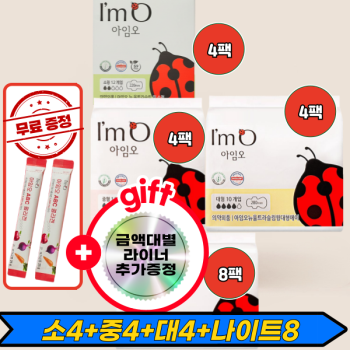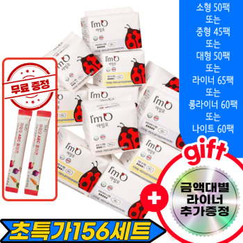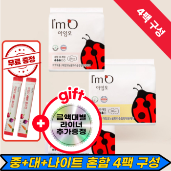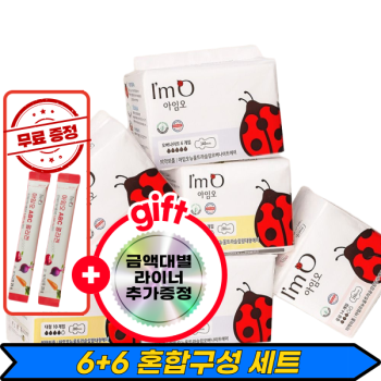 [사은품증정][6팩구성][유기농 생리대 아임오] 초특가+증정품(소,중,대,라이너,롱라이너,나이트)