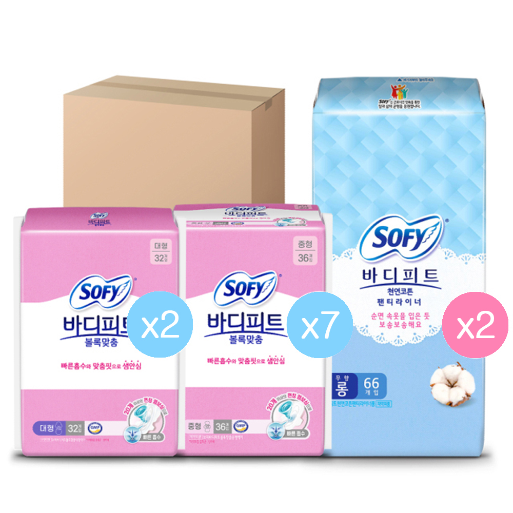 [쏘피] ★행사 진행중★ [패키지] LG 바디피트 볼록맞춤 중형 36Px7팩 + 대형 32Px2팩 + 천연코튼 롱라이너 무향 66Px2팩
